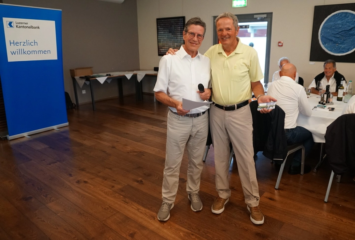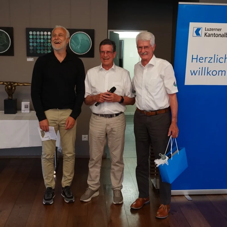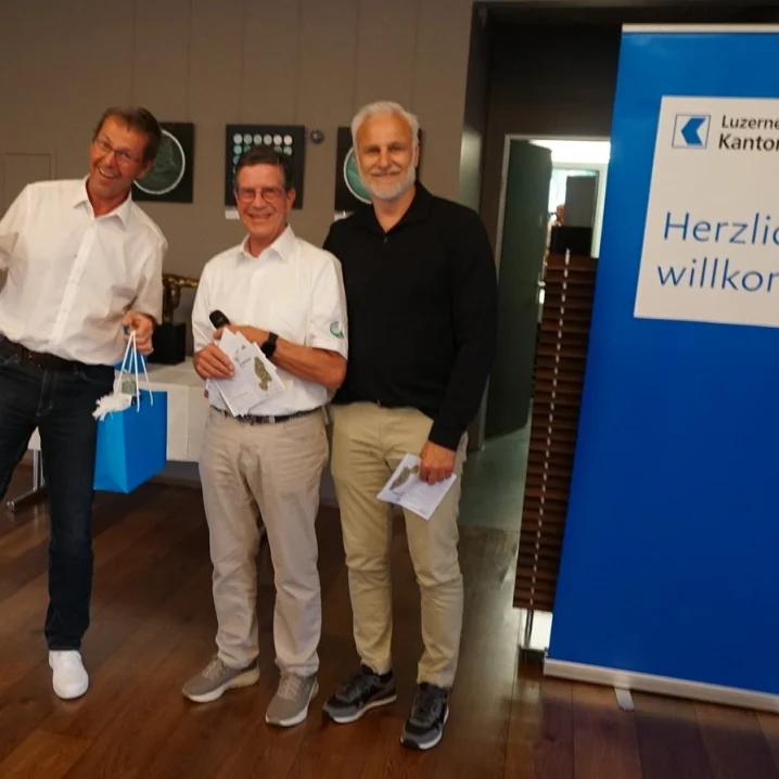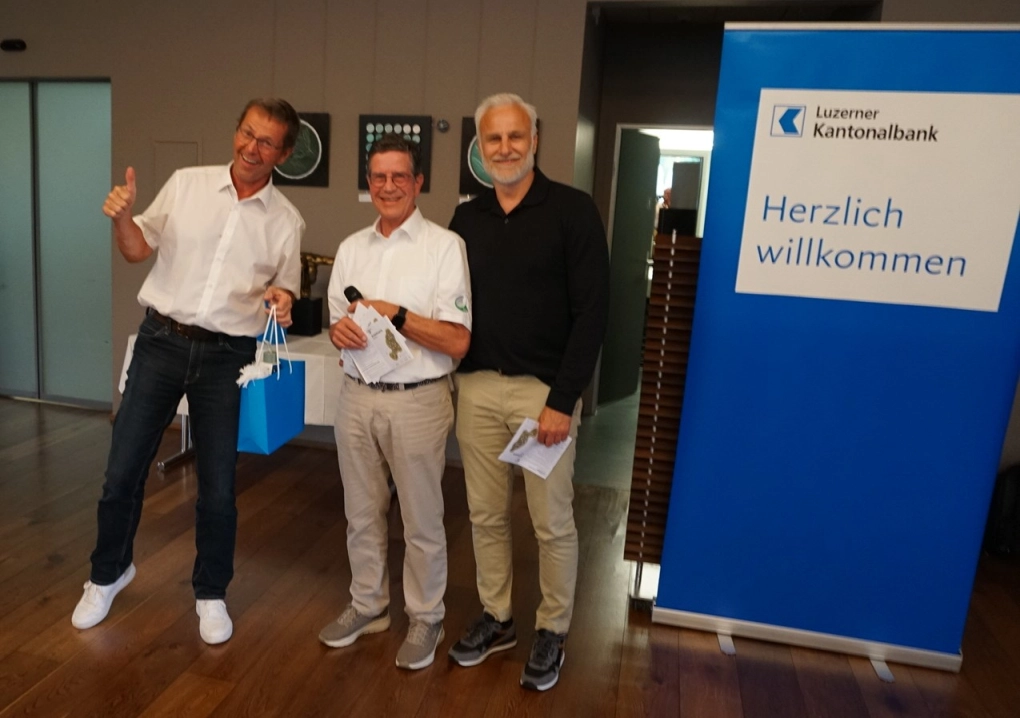 KURZINFO: Fünf blaue LUKB Bags mit wertvollem Inhalt (Trinkflache, Schwitztuch, Golfbälle etc.) wurden unter allen Turnierspielern verlost. Die Gewinner wurden von Heinz Siegrist aus den Scorekarten gezogen mit einer Ausnahme: Joos Roland spielte das Turnier nicht handicapwirksam. Als einziger Plauschspieler erhielt er den Preis vom Turnierleiter zugesprochen.